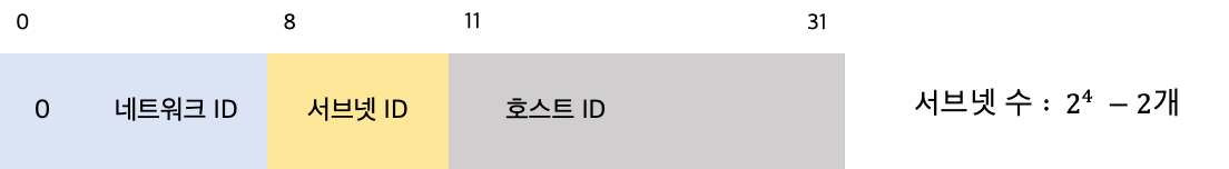 서브넷팅은 호스트 ID의 비트를 나눠서 서브넷 ID로 구성하는 것을 말합니다.