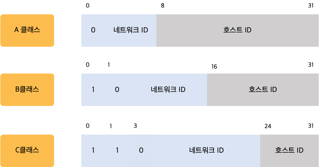 IP Address의 첫 비트에 따라 클래스가 결정됩니다.