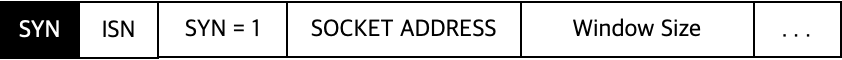 SYN 세그먼트에는 데이터가 들어 있지 않고 플래그 필드의 SYN이 1로 설정됩니다.