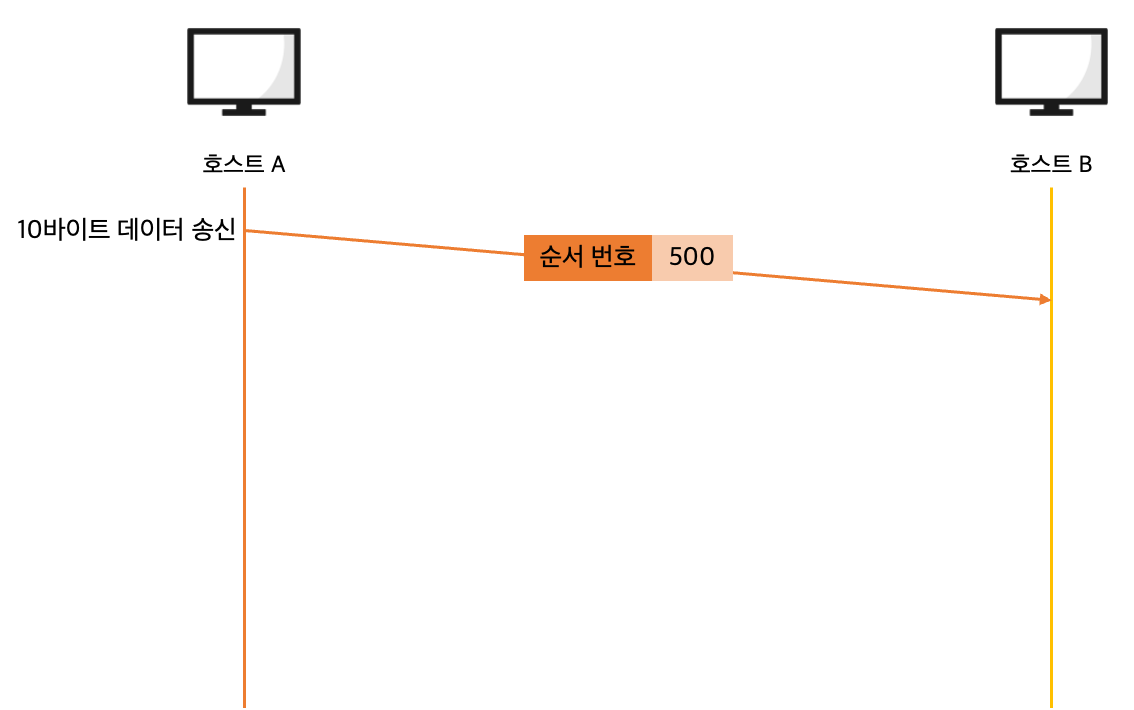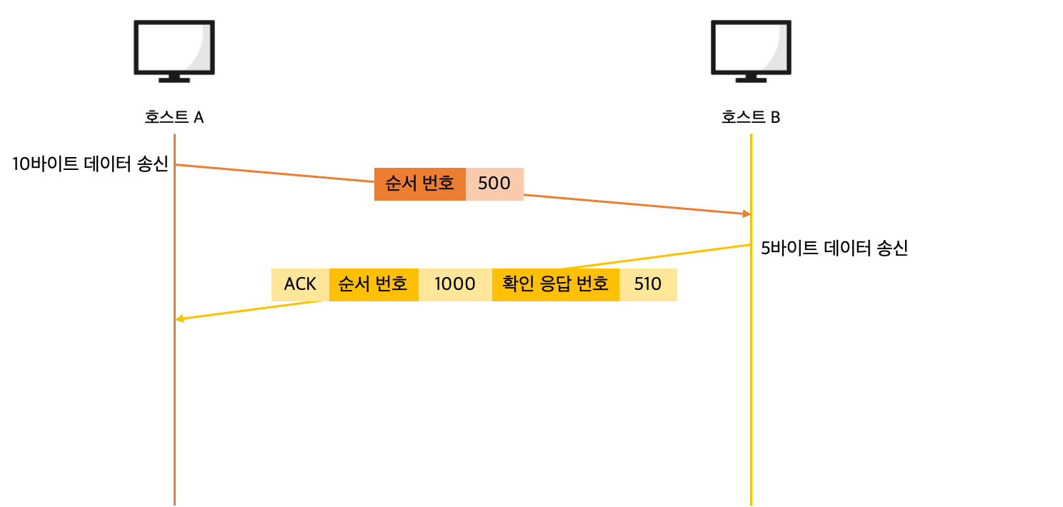 호스트 A가 500번 세그먼트부터 10 바이트를 전송했기 때문에 호스트 B의 확인 응답 번호에는 다음 데이터인 510번이 설정됩니다.