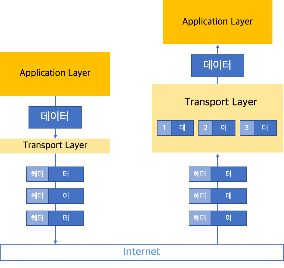 Transport Layer에서는 Application layer의 특정 애플리케이션으로 데이터를 전달합니다.