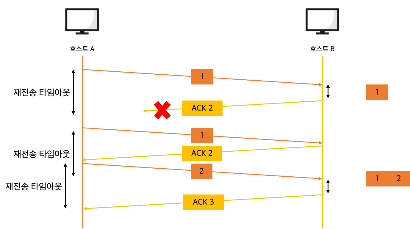 재전송 타이머 동안 ACK 세그먼트를 받지 못한 송신 호스트는 세그먼트를 재전송합니다.